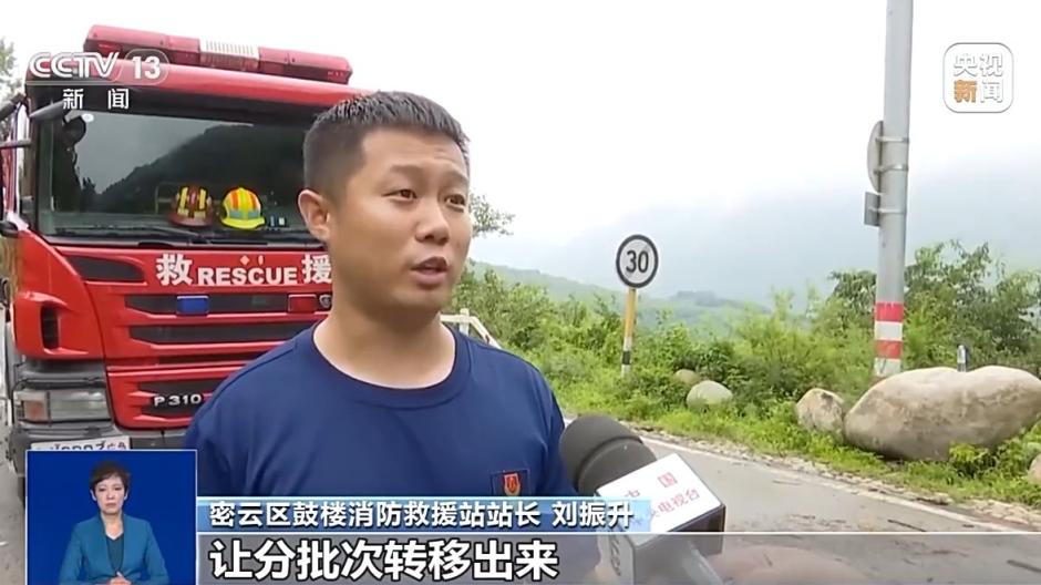 密云区鼓楼消防救援站站长 刘振升:我们把整个人群40人分成3个小队,我们每个大概四五名队员负责十几名队员,让分批次转移出来。